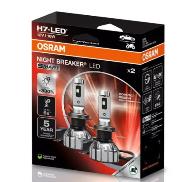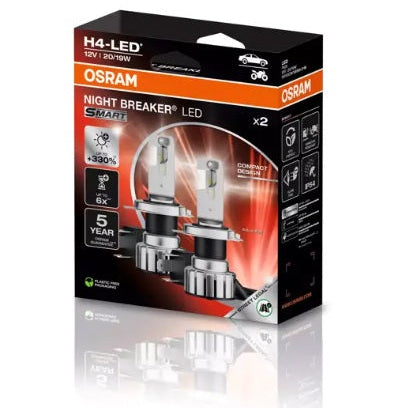 Die OSRAM NIGHT BREAKER LED SMART Lampen sind sowohl für H4- als auch H7-Fassungen erhältlich (12V, 20/19W bzw. 16W). Sie eignen sich ideal, um Ihr Fahrzeug mit aktueller LED-Technik auszustatten und profitieren dabei von OSRAM-Qualität und modernem Design. Für den Einbau wird die Unterstützung eines Fachbetriebs empfohlen. Bitte beachten Sie die offiziellen Kompatibilitätslisten für Ihr Fahrzeug.